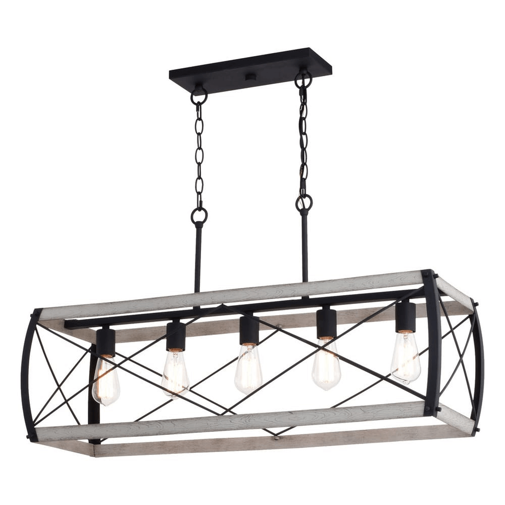 Perfect for illuminating long dining tables or kitchen islands, the Fremon 5 Light Cage Chandelier adds a bold, modern twist to your rustic home decor. The chandelier features black and white ash construction with slightly curved edges and spun metal wire. Ideal for cabins and urban homes alike.
