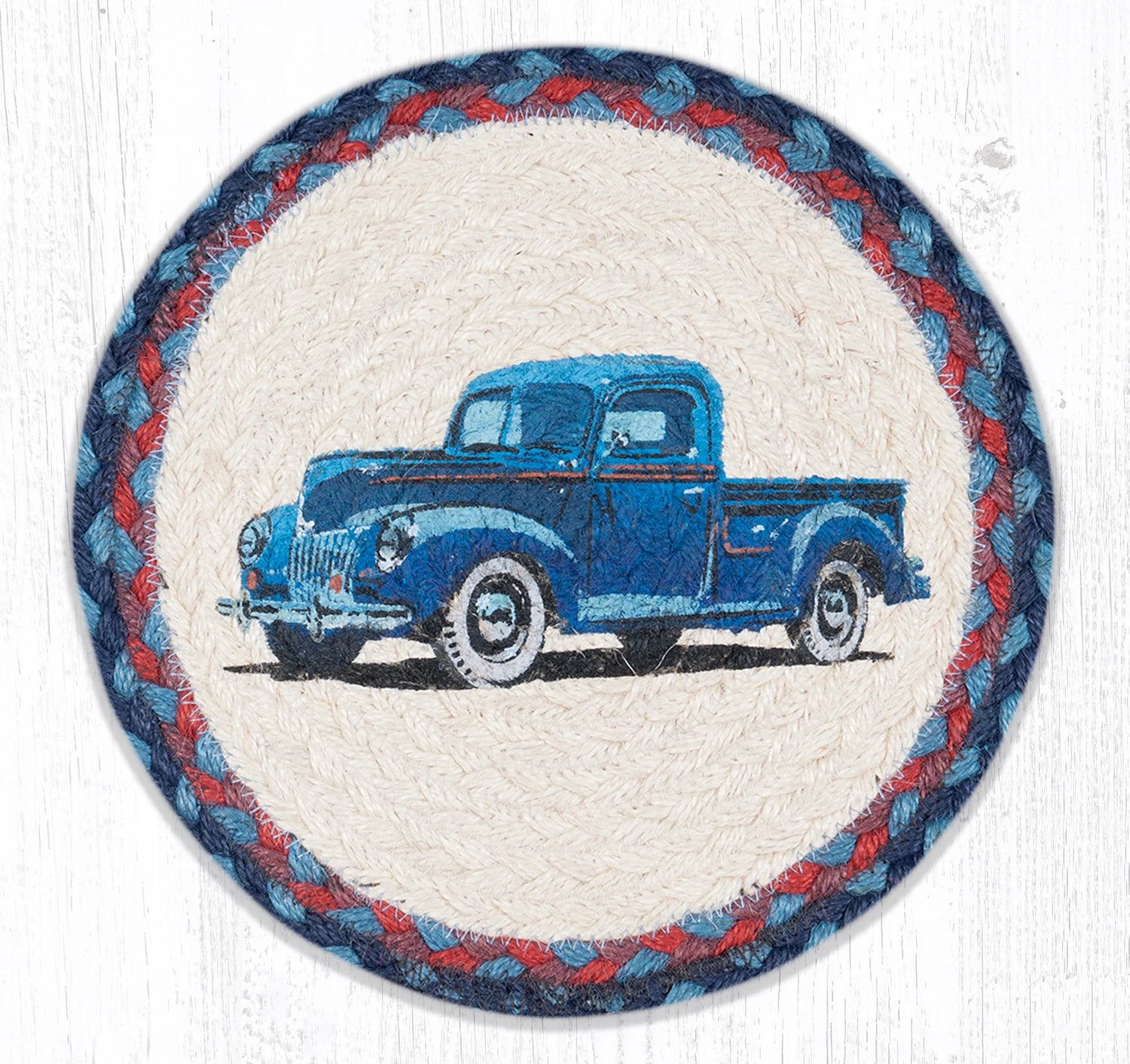 The Old Blue Printed Round Trivet is a versatile addition to any kitchen. With its unique truck design, it adds a touch of charm to your table setting. Made from durable materials, this trivet protects your countertops and surfaces from heat damage. Perfect for everyday use or special occasions.