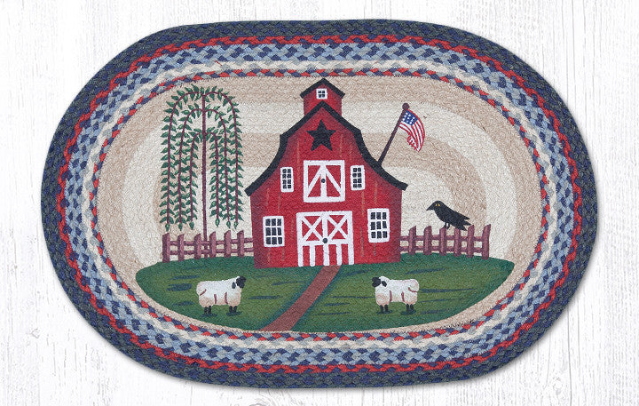Red, White, & Barn Oval Patch Rug