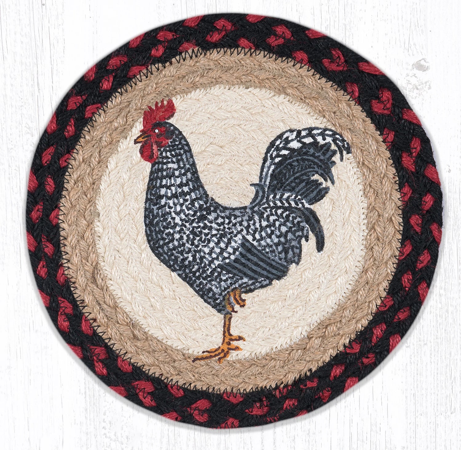 This Rooster Weave Printed Round Trivet is a functional and stylish addition to your kitchen. With a unique rooster weave pattern, it protects surfaces from heat while adding a touch of charm to your table. Made of durable materials, it is perfect for everyday use and special occasions.