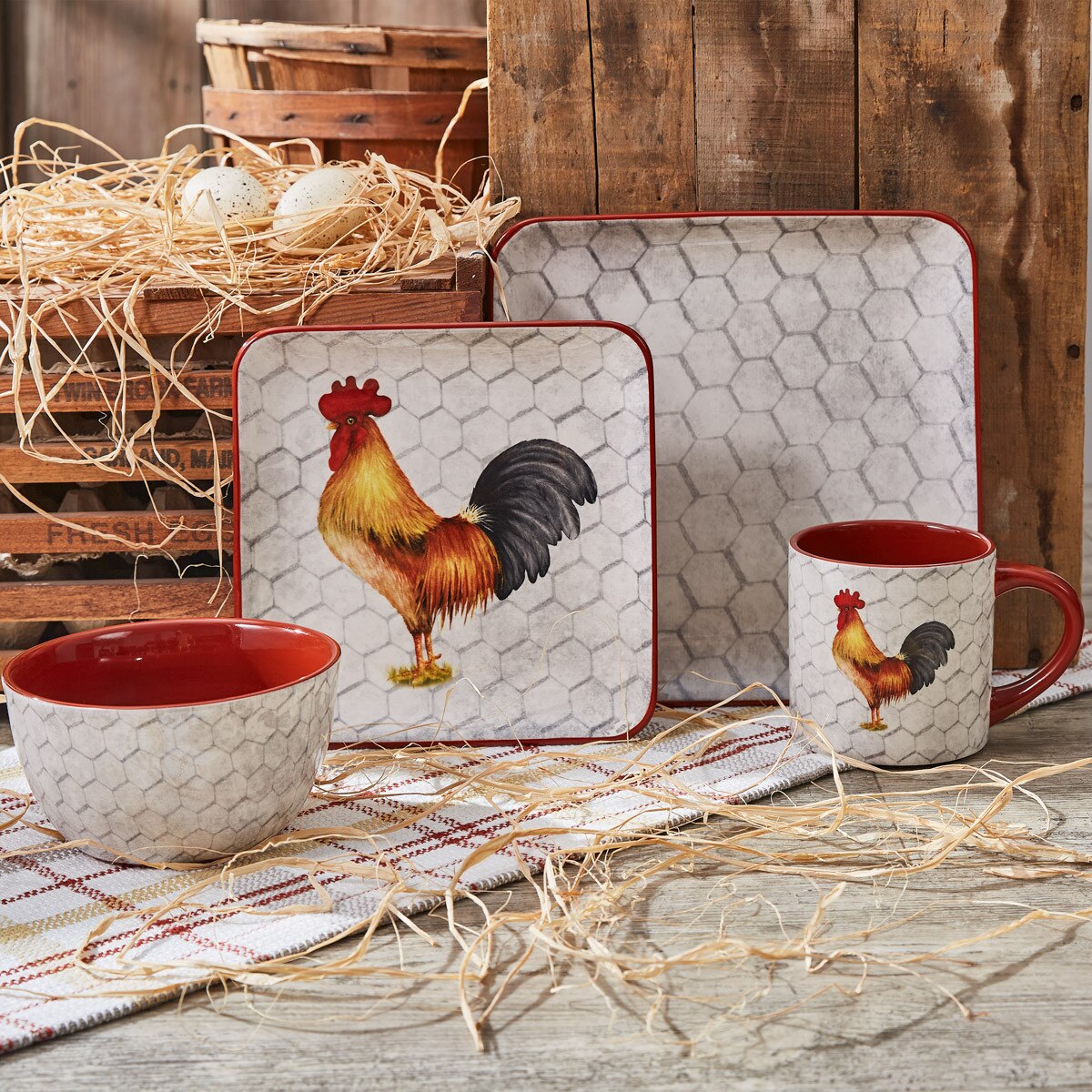 This Wake Up Call Rooster Salad Plate is perfect for adding a touch of farmhouse charm to your dining experience. Made from durable materials, it features a vibrant rooster design. Elevate your salads with this stylish and practical plate.